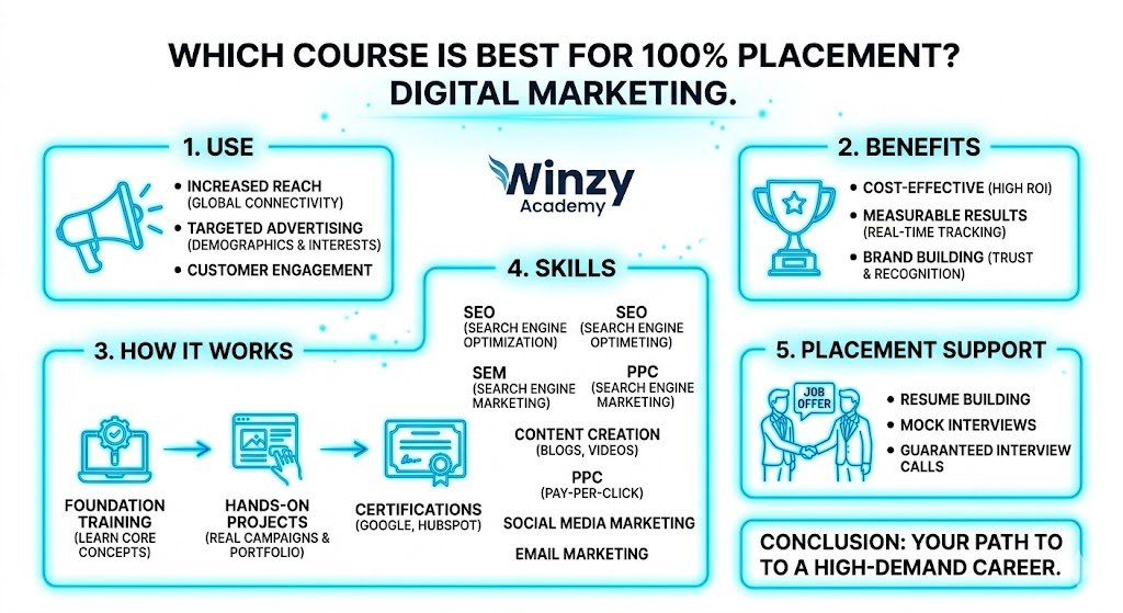 Which course is best for 100% placement Digital Marketing: Definition: Digital Marketing is the strategic practice of promoting brands, products, or services using digital channels like […]